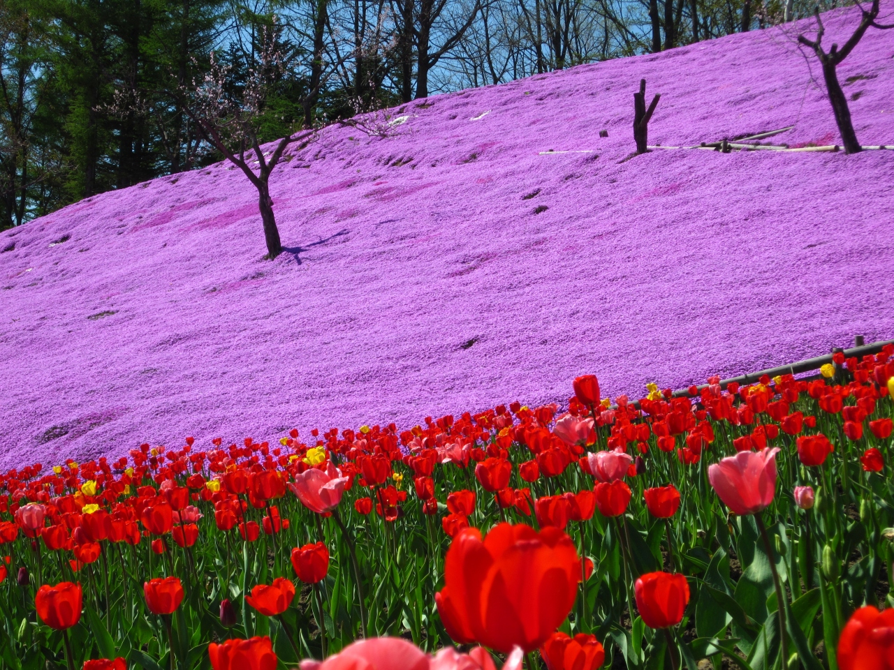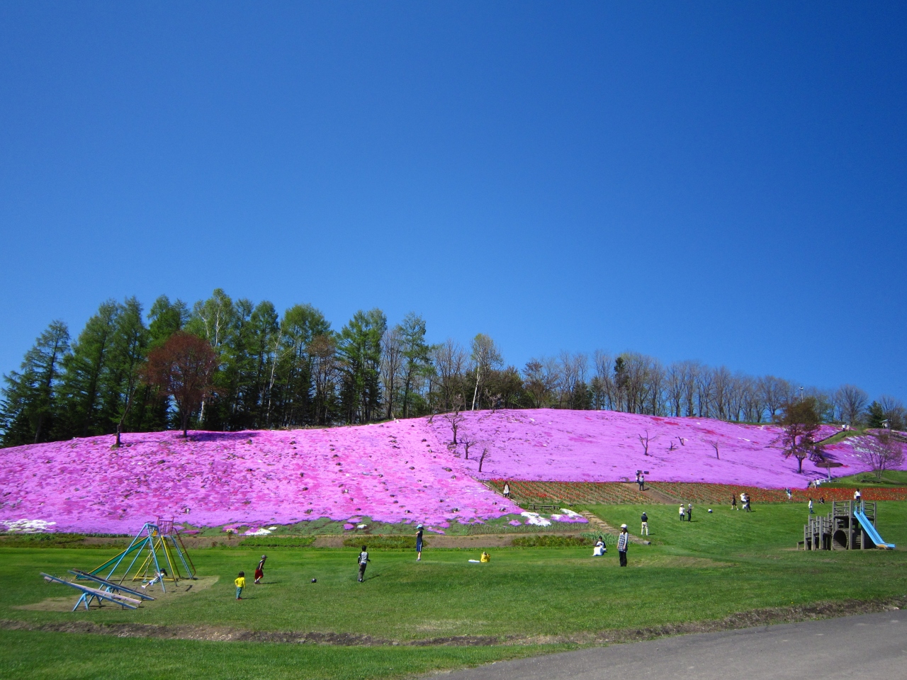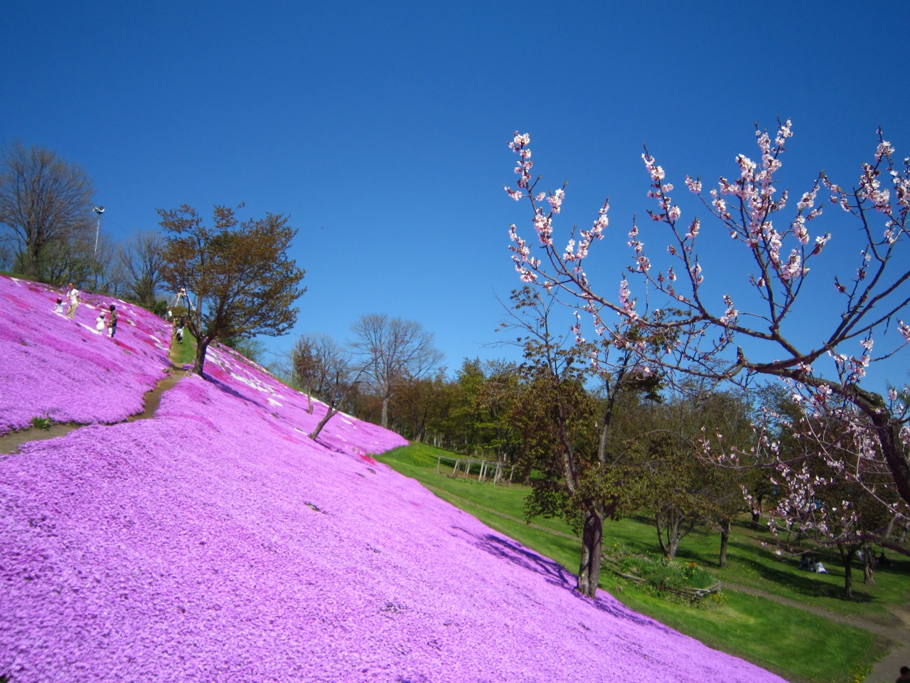 上湧別のチューリップを見た帰り、遠軽町の太陽の丘えんがる公園に寄ってみました。芝桜が満開でした。