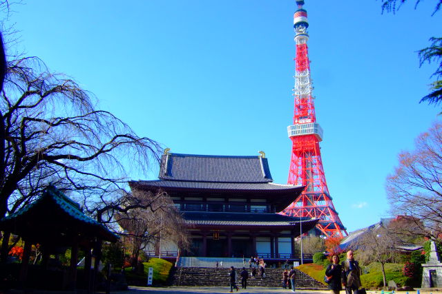 ※増上寺 大殿 背後にそびえる東京タワーの竣工は昭和33年(1958年)。