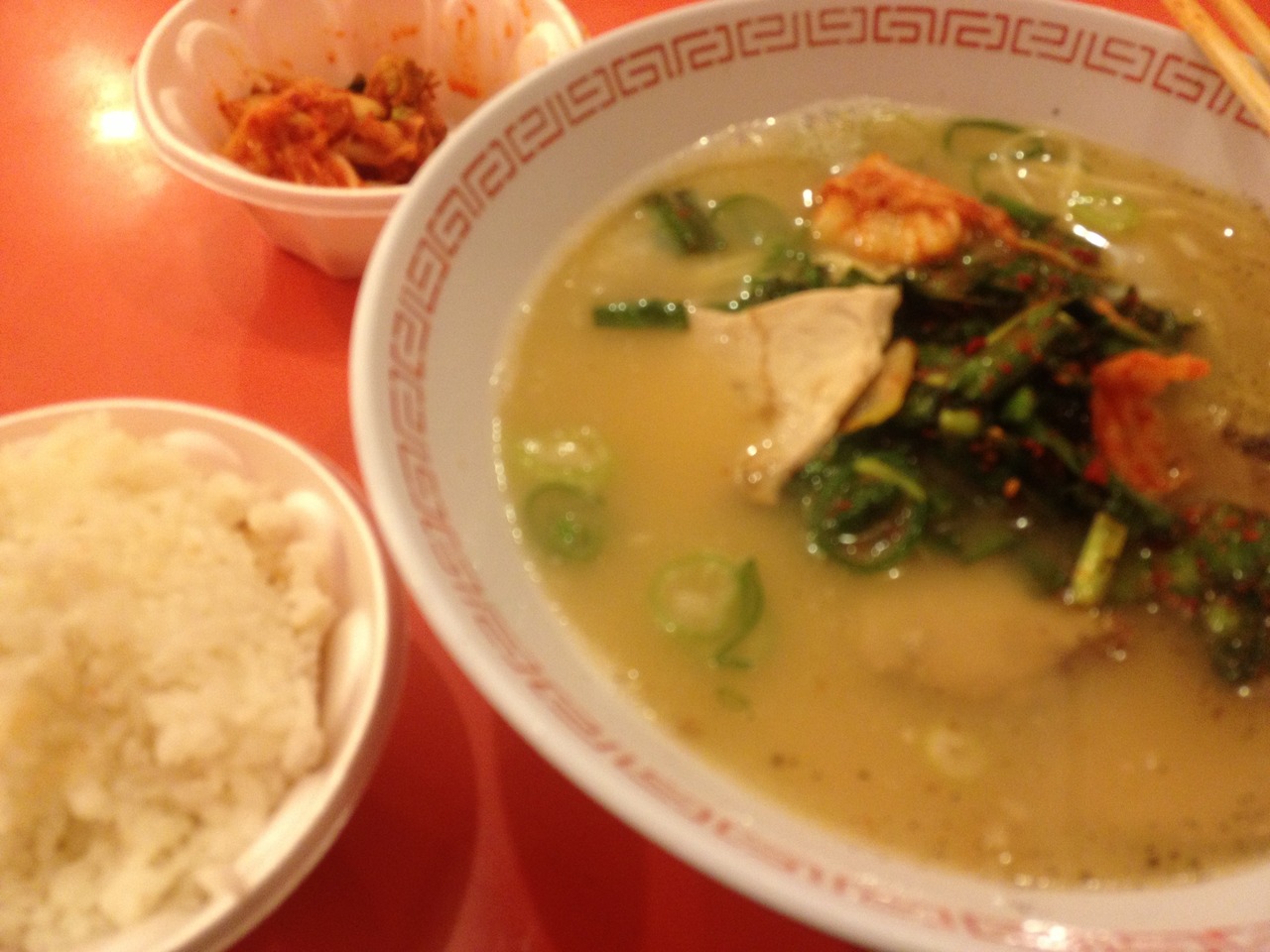 甘めのスープにキムチをいれて食べる。安定の味です。