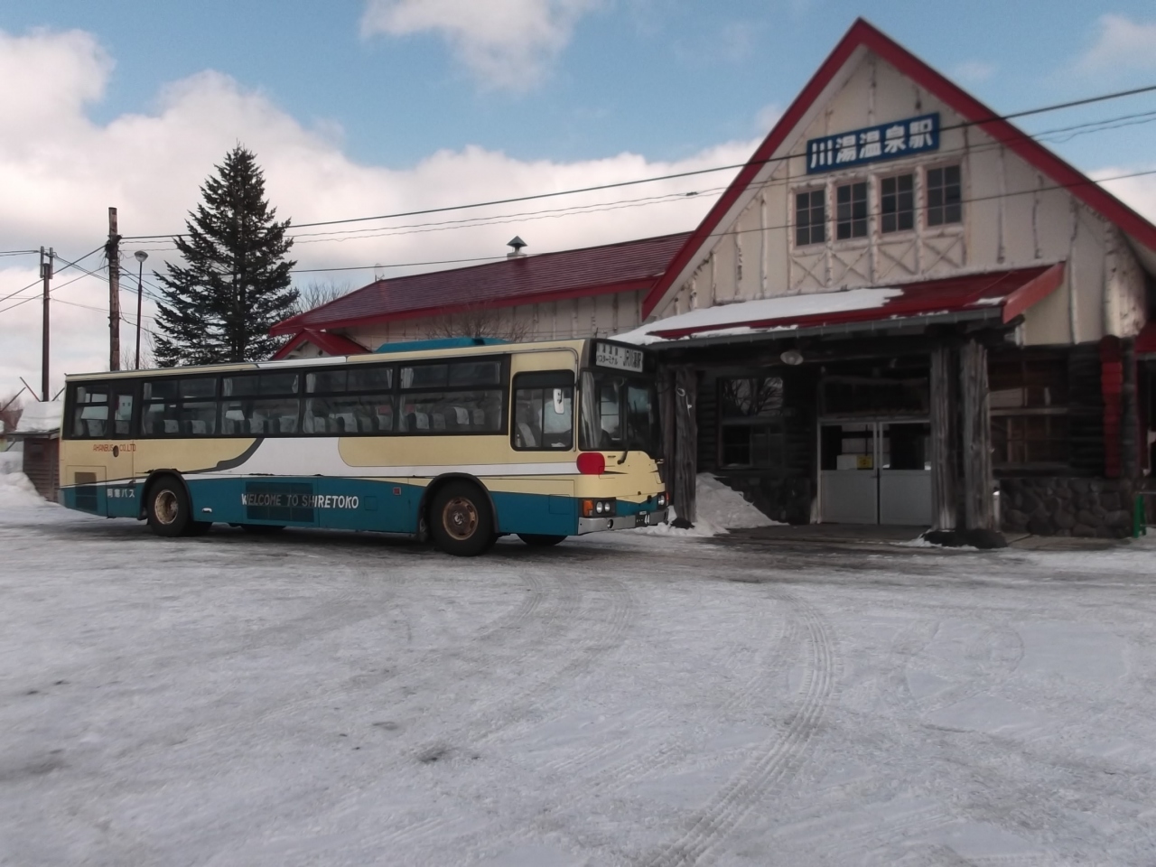 川湯温泉発13時30分のバスに乗りました。このバスは、美留和行きのバスで、釧網本線の川湯温泉駅には行かず、駅入り口のバス停で下車しました。