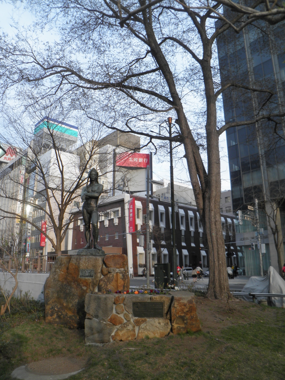 春の陽気に誘われて、大通り公園を散策しました。 夕方なので上着がないと寒い感じだったけど、ゴールデンウィークのせいか多くの観光客が訪れていました。 たくさ んある花壇には、こった装飾の花がうえられていました。 公園の端にある湖風の像も周囲が整備され花が植えられていました。 裸像なので寒そうにみえました。
