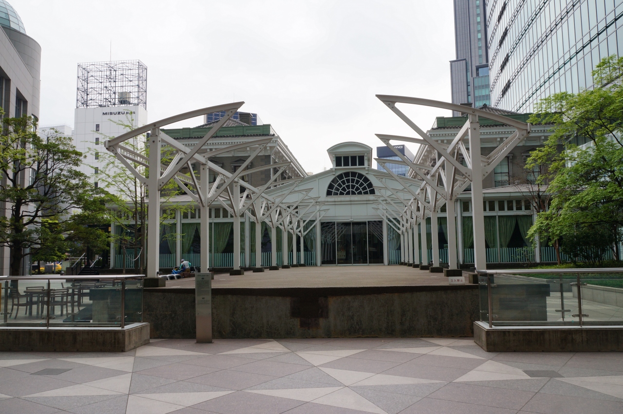 明治5年、新橋~横浜間に日本の最初の鉄道が開通した際に 建てられた「旧新橋停車場」の駅舎を、当時と同じ位置に忠実に再現したものがこちらの建物。