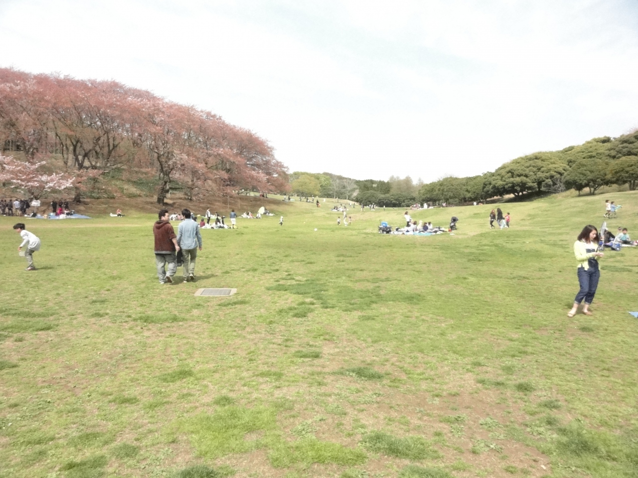 根岸森林公園は戦前の競馬場跡につくられた広い公園です。中央には大きな芝生の広場があり子ども連れの家族がシーツを広げて遊んでいます。また広場の周遊には小道がありジョキングしている人もいます。奥には雑木林や池もあり変化に富んだ公園です。