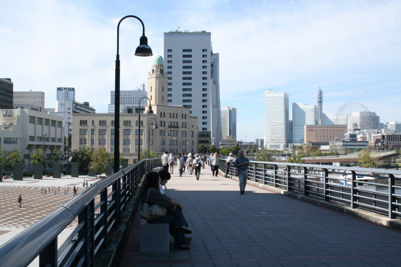 港の埠頭に貨物を運ぶ鉄道跡が散策用の小道になっています。桜木町駅から山下公園までつながっているので観光ルートを結ぶので休日には大勢の人が歩いています。途中に鉄橋がのこっており、また高架部分もあるので場所によって雰囲気が変わります。