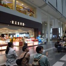 羽田空港の出発ロビー前にある大きなお土産やです。羽田空港限定の東京ばななプリン味を買いました。ここでもワオンカードの支払いが出来るので便利です。だいたいの東京土産は揃っていると思います。ところどころにイスがあるので休んだり出来ます。