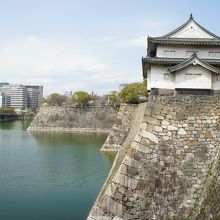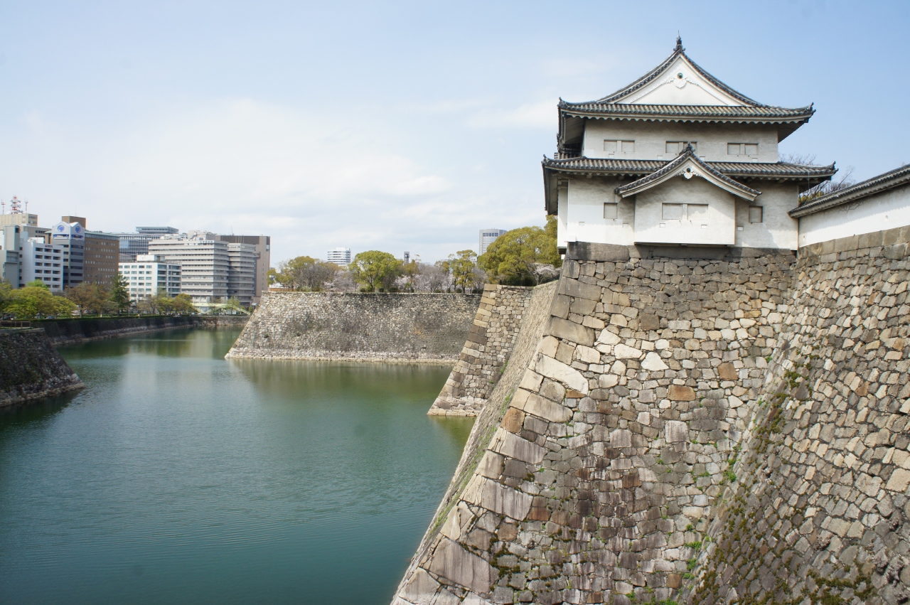 高さでは、伊賀の上野城の方が高いのですが、そちらは石垣の端っこまで、柵も何にもない。危ないことこの上ない感じがあって、それも合わせてインパクト大。大阪城は、むしろ優美さの方がピッタリした表現かと思います。