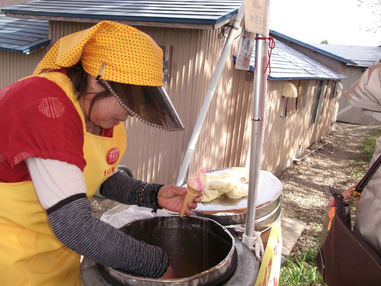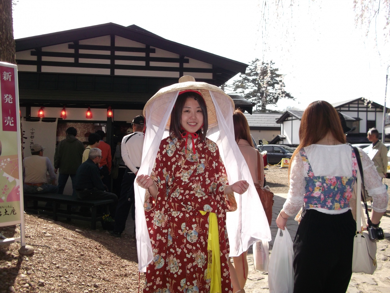 ?武家屋敷界隈の売店でこの地方独特の和服を着た看板娘がとてもかわいいのです。
