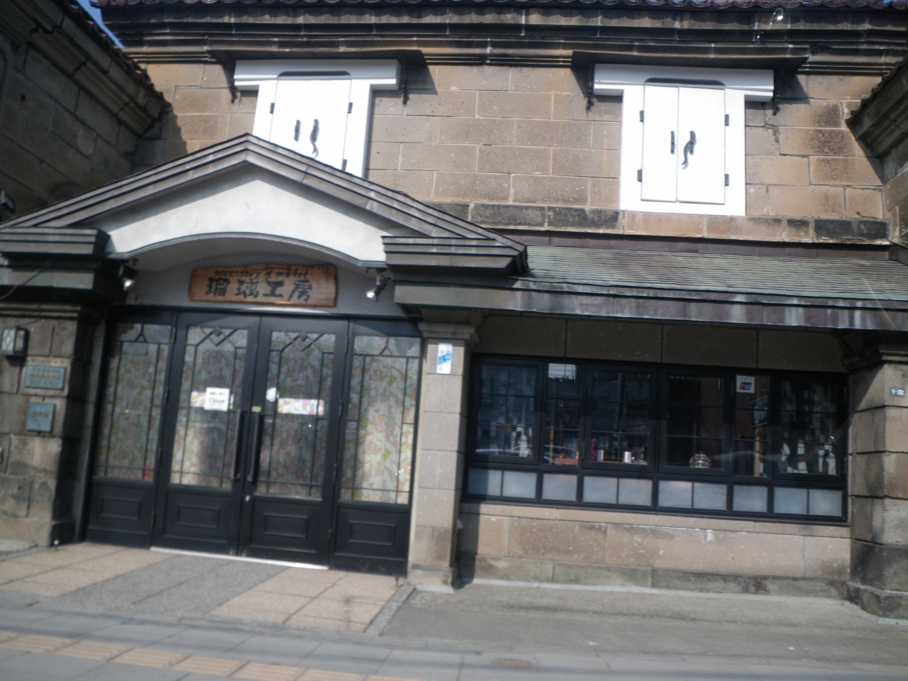明治・大正期に海陸物産、肥料販売および海運業を営む商店。両袖にうだつを建て、2階正面の窓には漆喰塗りの開き窓が収まり、創建時の形態をよくとどめています。平成5年に小樽市都市景観賞を受賞したそう。現在は瑠璃工房というアクセサリー店になっています。