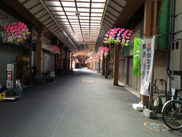 桑名駅と九華公園のちょうど中間に位置するアーケード商店街です。毎月3と8の日に三八市という朝市が開かれ、とても賑わうそうです。でも、私が行った月曜は休業の店が多く、少し寂しく感じました。商店街には「くわなまちの駅」という観光案内と土産物販売所を兼ねた施設があります。私はそこで観光マップをもらいました。また、桑名別院という由緒ある寺院もまちの駅の隣にあります。