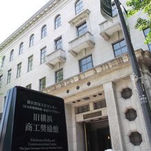 横浜情報文化センターは日本大通りに面した側からは旧横浜商工奨励館の玄関・外観を見ることができます。ここは高層棟に旧建物の低層部を復元し横浜市認定の歴史的建造物になっています。