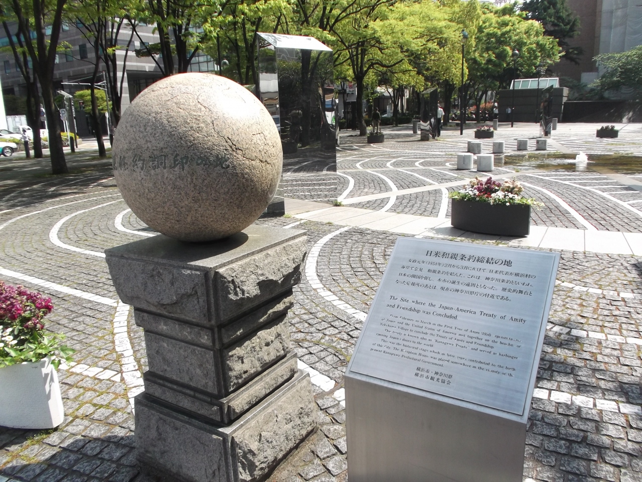 お子様連れの親子がこの丸いオブジェを撫でていました。日本開国のシンポル、地球平和でありたいものです。
