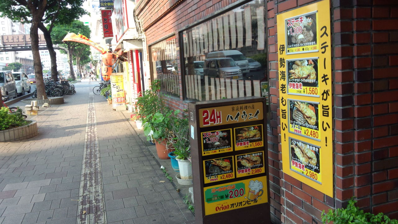 那覇58号沿い、とまりんの南側にある24時間営業食堂。名護ソバとステーキが大きくフィーチャーされているが、なんでもある感じ。採光が弱く、店内は暗め。名護ソバをビールと共に頂く。麺はノーマル。味はオーソドックスな感じ。24時間営業が使い勝手よい。