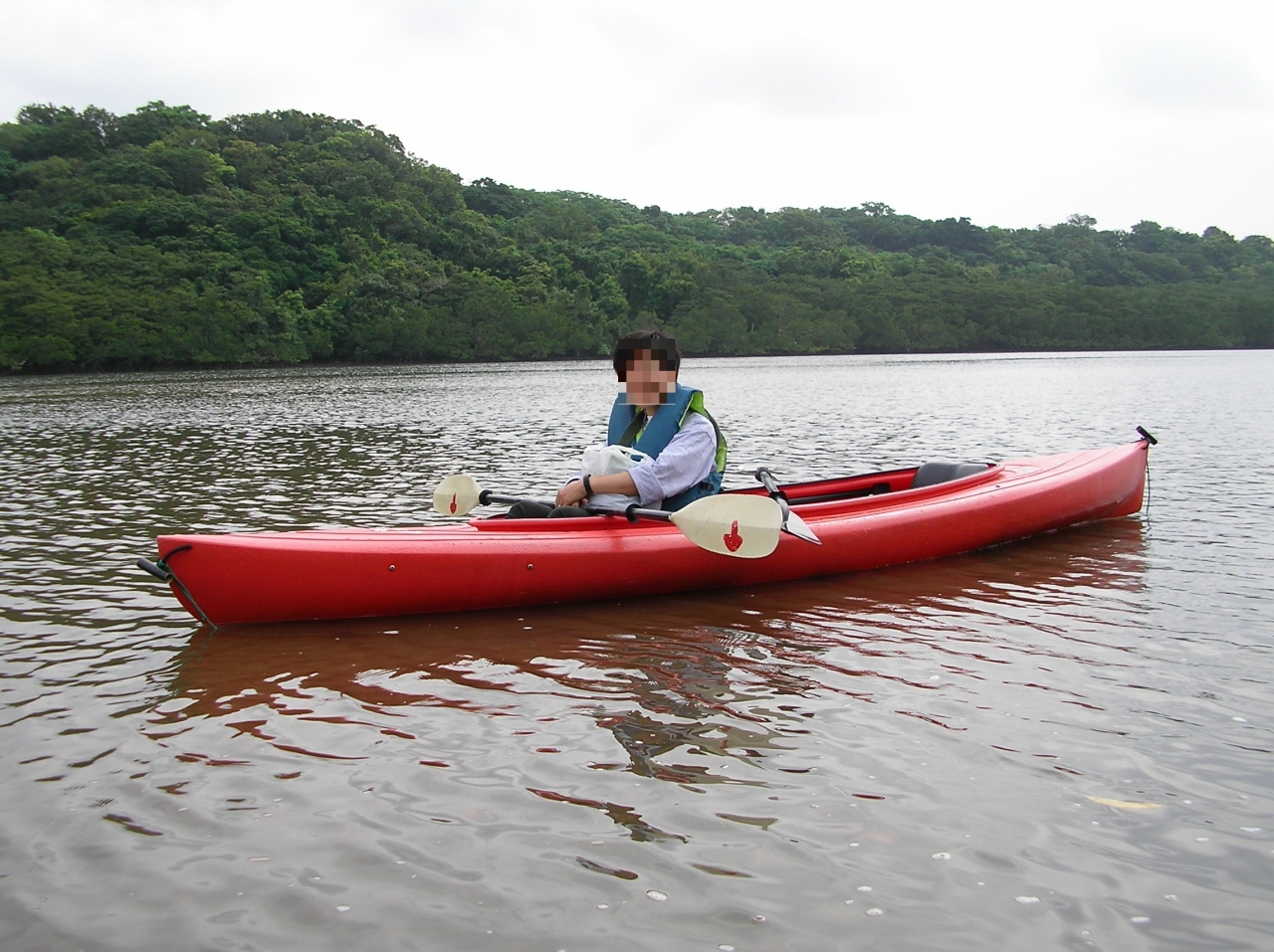仲間川をカヌーで遊覧しました。仲間川は浦内川につぐ大きな川で、河口付近の川幅は200mを越えるところもあります。水量はそれほど豊富ではありませんが、沿岸には広大なマングローブ湿地帯を形成し、上流に行くとジャングルの様な風景を見ることが出来ます。 カヌーで川を遡って、洲に降りてマングメーブや蟹を観察したり、日本最大のサキシマスオウの木を見たりして一日愉しみました。観光船ツアーも利用したこともありますが、仲間川を愉しむには、カヌーが一番だと思います。