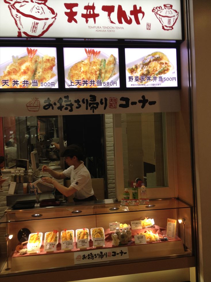 天丼てんや (羽田空港店) (テンドンテンヤ)では、お持ち帰りコーナが有って、店内で食べる時間が無い時には、弁当として持ち帰る事ができます。おすすめは、天丼弁当ですね、ほかほかのごはんの上に天ぷらがのっています。ぜひ。
