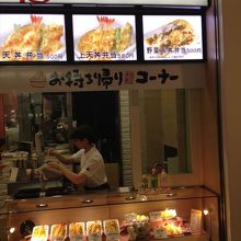 お持ち帰りコーナが有って、店内で食べる時間が無い時には、弁当として持ち帰る事ができます。