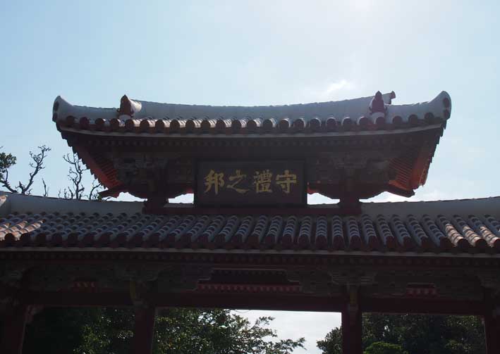 沖縄のシンボル・集合写真の宝庫?戦後に復元されたものらしいですが新しいけど重厚感はありますね。ガイドブックのイメージ通りです。守礼之那の文字はチョット慇懃が感じがします。団体用の集合写真のひな壇がちょっと邪魔です。