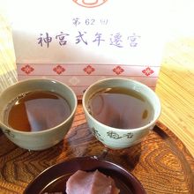 大きな鍋で沸かされたお茶と赤福を縁側でいただきました。川を眺めながらゆっくりできます。人は多いので場所とりの運もいります。季節柄、かき氷は大渋滞でしたが、赤福は落ち着いていました、とても美味しかったです。
