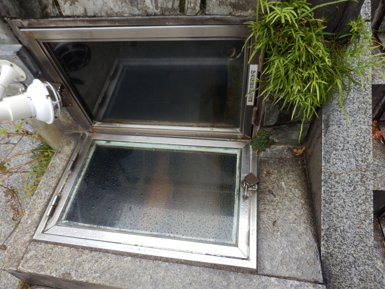 石段沿いに何か所も小間口をのぞけるガラス窓があります。