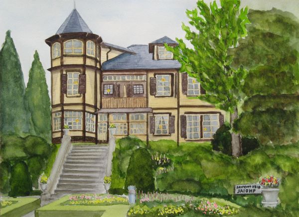 1910年に明治政府の外交官の邸宅として、東京都渋谷区南平台に建てられた洋館を移設した。。