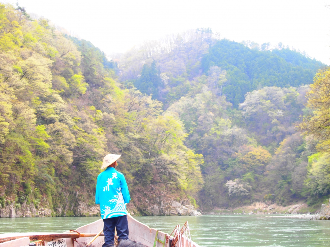 ガイドさんのお話に歌と船頭さんの投網実演もありました。