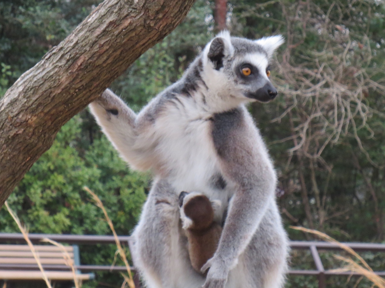 ワオキツネザルの展示スペースは、足元や頭上すれすれを、お猿が飛び回っていますので、大人も子供も大喜びです。