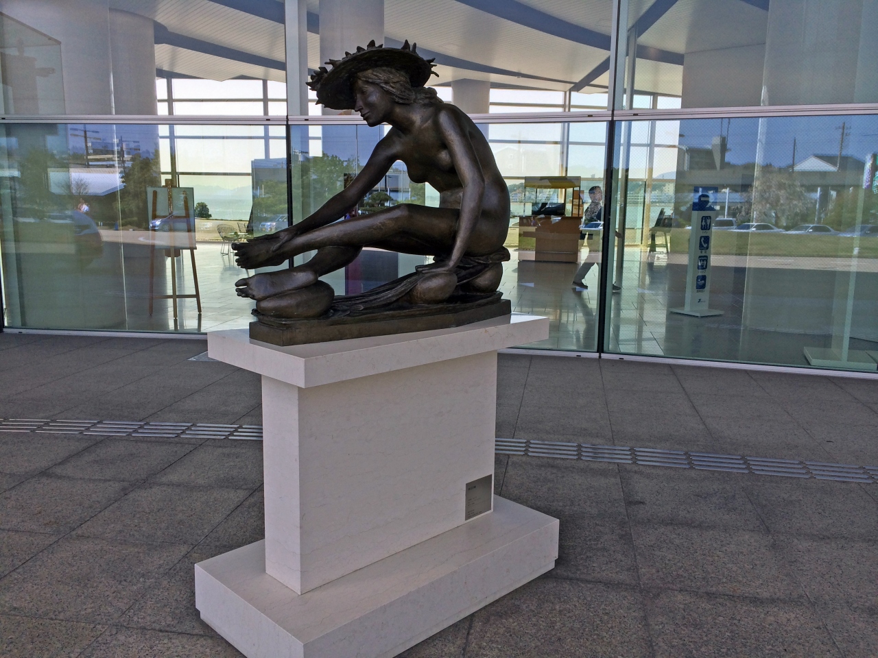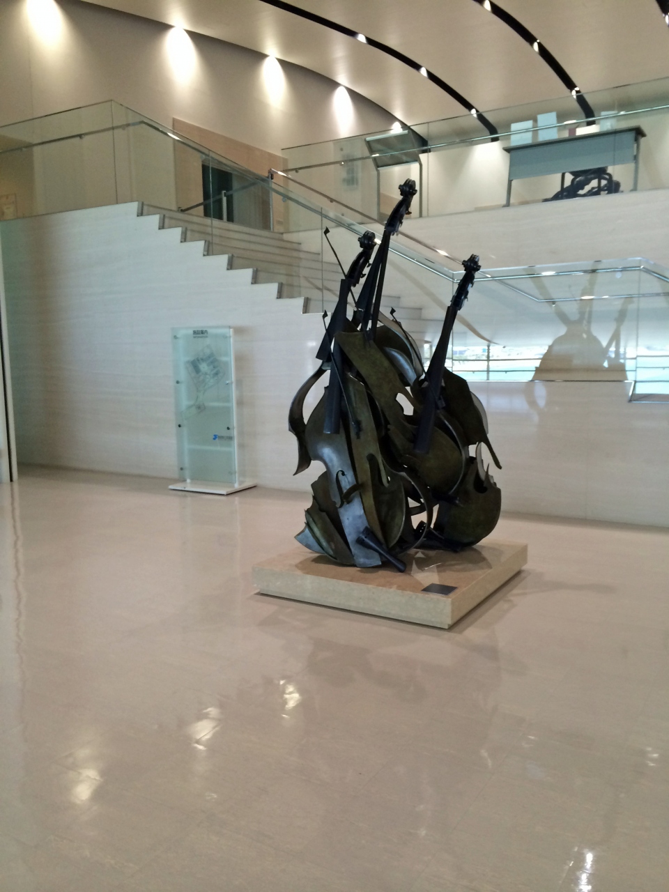 島根県立美術館の駐車場は、道を挟んだ反対側にあるので、レンタカーで訪れるときは注意が必要です。地下道を徒歩で渡ってから館内に入ります。
