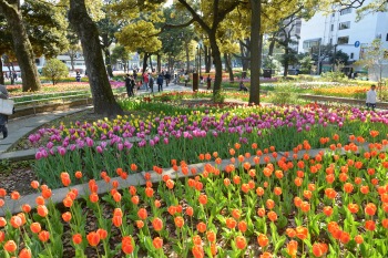 横浜公園いっぱいに咲くチューリップは69種類16万本。