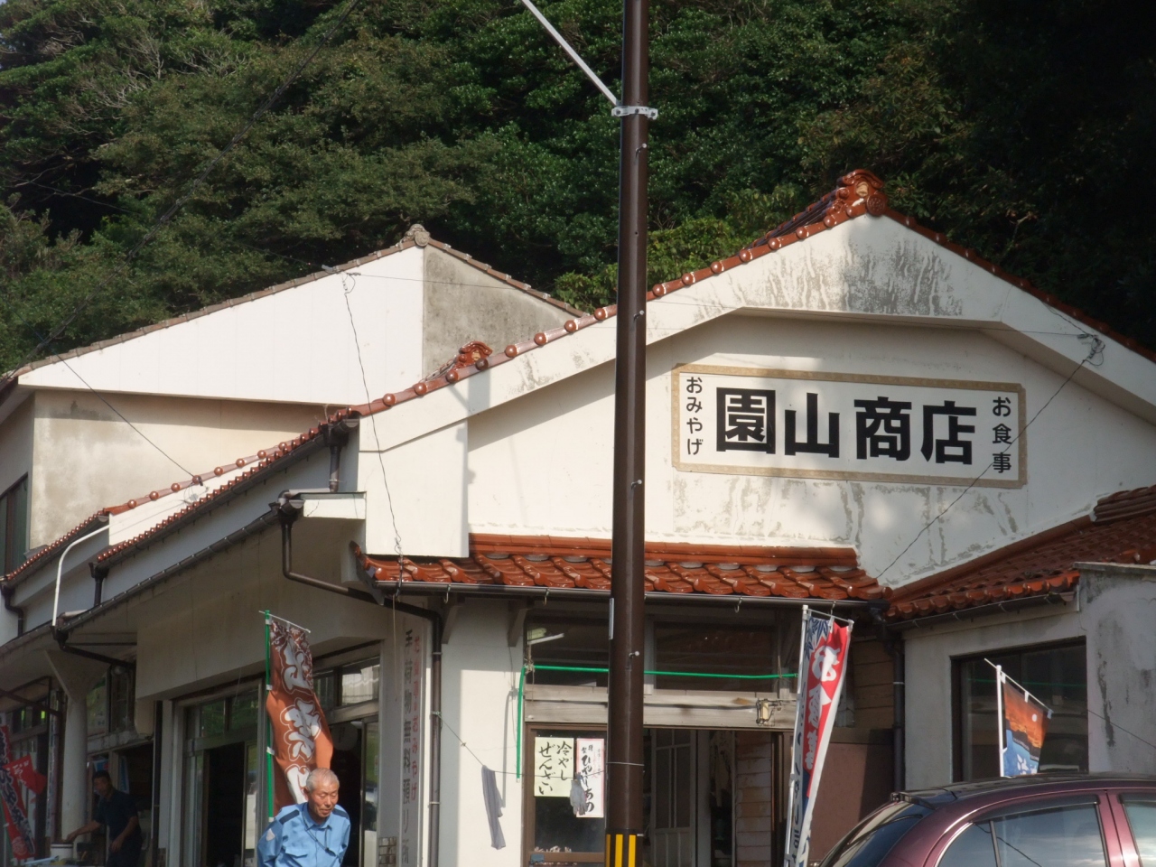 日御碕神社にお参りに行った私たちは、烏賊焼きのこおばしい匂いに誘われて、園山商店にやって来ました。