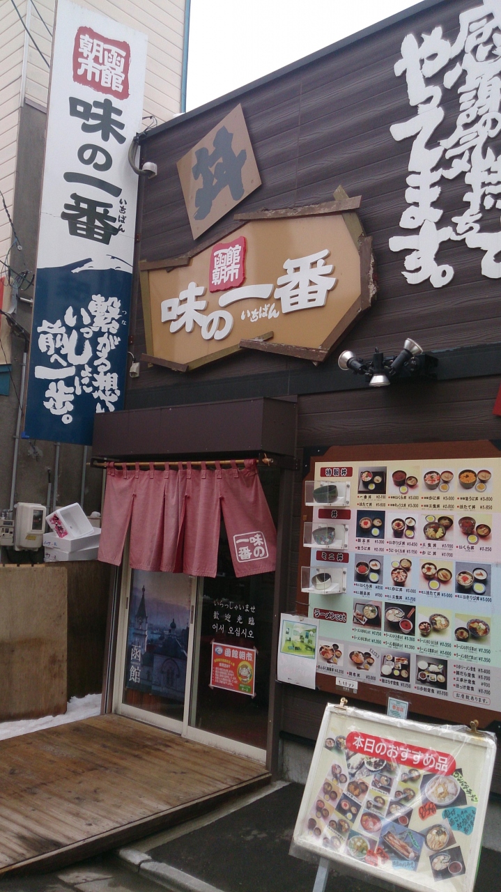 駅から近く、函館朝市の中にあります。海鮮を味わえる店が多い中、ここは海鮮とラーメンが味わえる店です。函館といえば塩ラーメン。当然、塩ラーメンとイクラ丼のセットを注文。スープはあっさりしていますが、コクがあるおいしいラーメン。イクラもプチプチとした食感が食欲をそそります。ラーメン単品だと安いのですが、やっぱり函館に来たら海鮮も食べたいですから、そういう欲ばり人には最適の食堂です。
