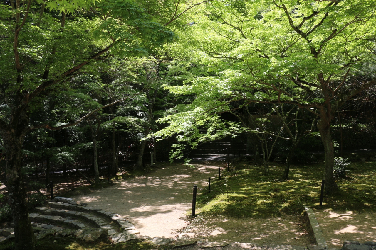 モミジの新緑が美しく、秋の紅葉シーズンも楽しめそうです。