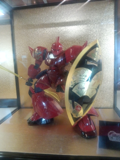 山中温泉の総合観光案内所です。舞台では公演も行われていて、踊りを見る事が出来ます。ここで、是非見ていただきたいのが、山中塗りで出来たガンプラです。シャア専用ザク、ガンダム、ゲルググなど6体が飾られています。芸術的で美しいガンプラ、是非見てくださいね。