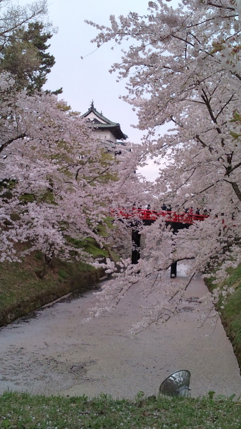 桜を見に4月30日に行きました。満開は少し過ぎていて、散り始めでした。それでも、何せ桜の本数が多いので、風が吹くと舞い散る桜の見事な事!お城のお堀も、散った桜の花びらで埋め尽くされ、本当に綺麗。やっぱり、弘前公園は桜の名所ですね!いっぱい出ている屋台もGOO!