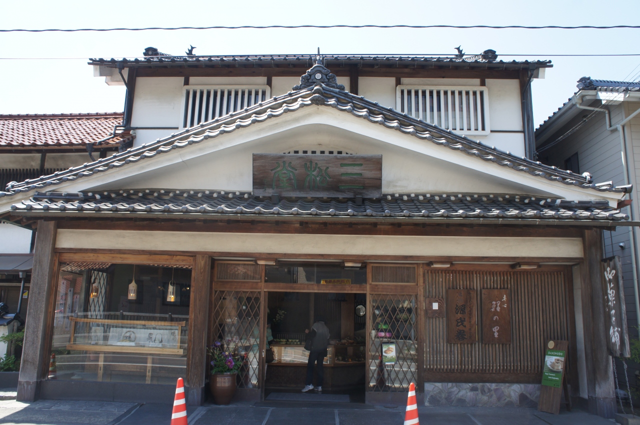 津和野には、源氏巻きという名物のお菓子があって、市内には10件くらい、これを扱っているお店がありまして、三松堂もその一つ。殿町の沙羅の木の隣りにあるのは支店で、橋を渡った川向こうにある立派な構えが本店です。