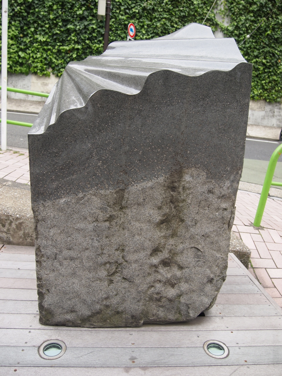 麻布の「布」をイメージして作られた彫刻作品だそうですが、子供たちにはちょうど飛び乗って遊べる高さらしく子供たちが飛び乗る遊具化していました。