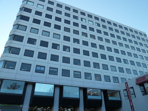 山下公園むを挟んだ大通りに面した大きな多目的ビル。