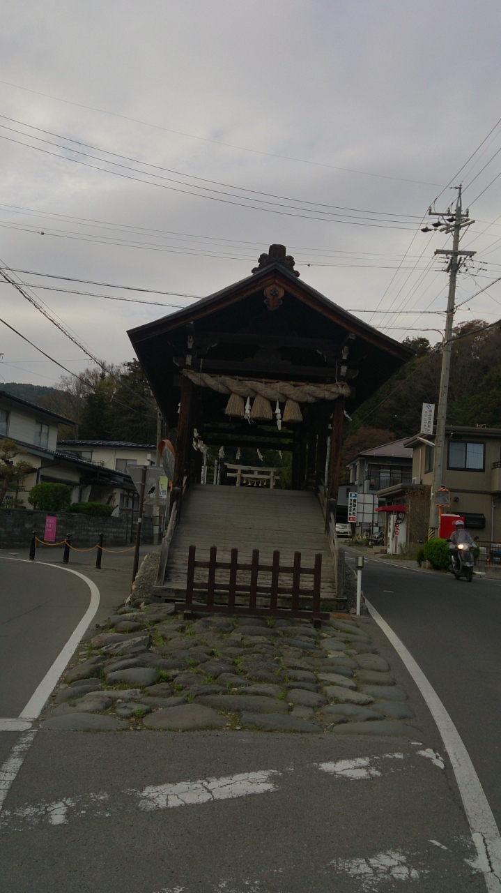 参道に江戸時代からの屋根つきの太鼓橋がありその脇を車が走る姿が異様な感じがした