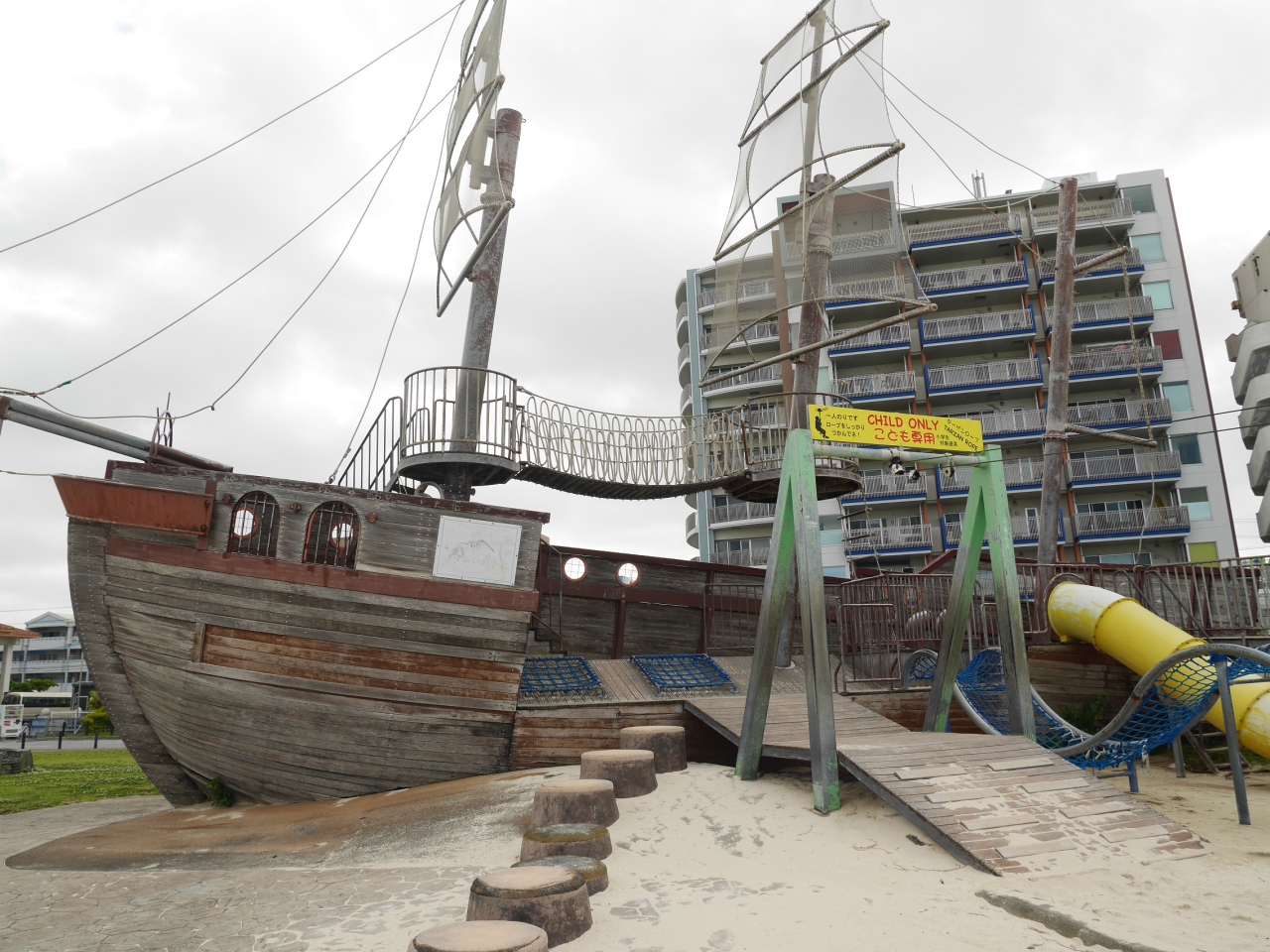 遊歩道、バスケットコート、バーベキュー施設、難破船のオブジェ(遊具)などがあります。