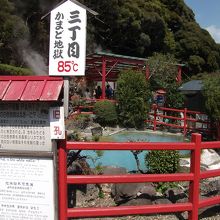 順路に沿って進むと途中で飲める温泉がある。熱いので少量にしておいたほうがいい。
