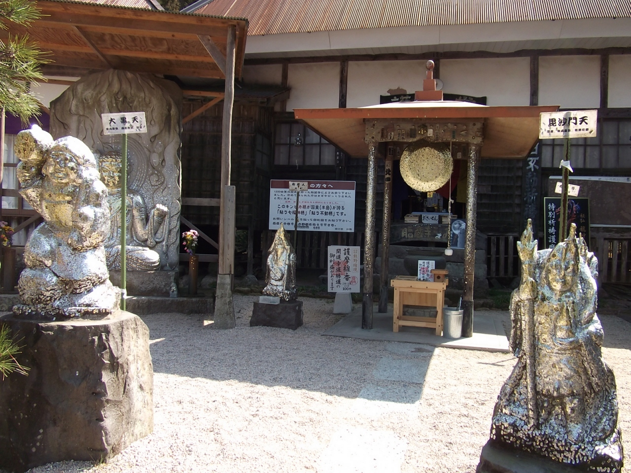七福神、不動明王とシールが光っているが干支の動物の石像はまだ貼りが足りないようである。
