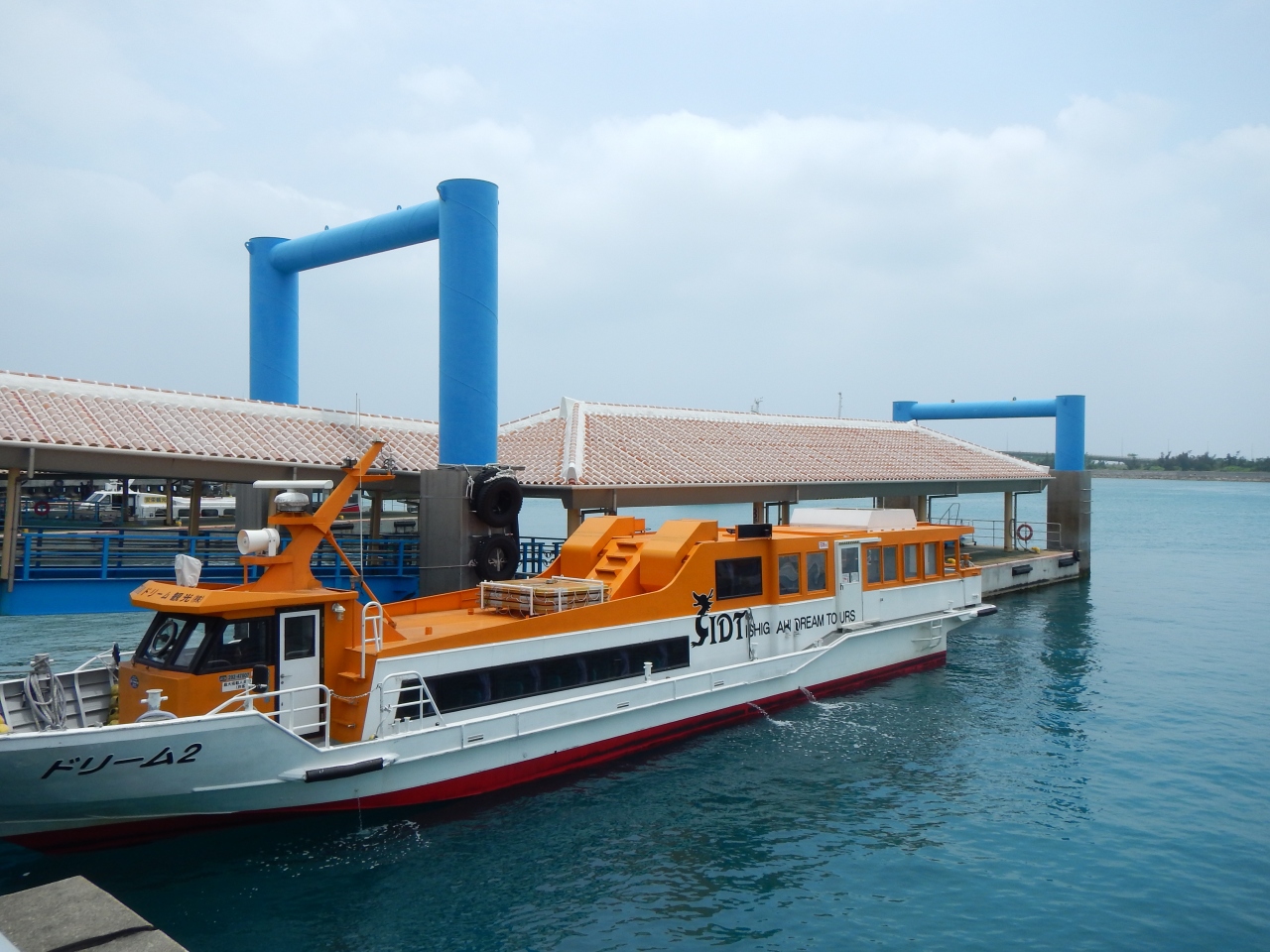 黒島から石垣島まで乗りました。黒島の券売所は待合室の中ではありません。海に向かって左手のプレハブに係の人がいます。黒島での自転車の貸し出しも行っています。八重山観光フェリーと安栄観光は共同運行になっていて、乗船券が共通ですが、この石垣島ドリーム観光は別ですから注意が必要です。