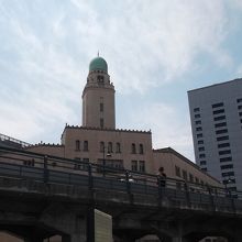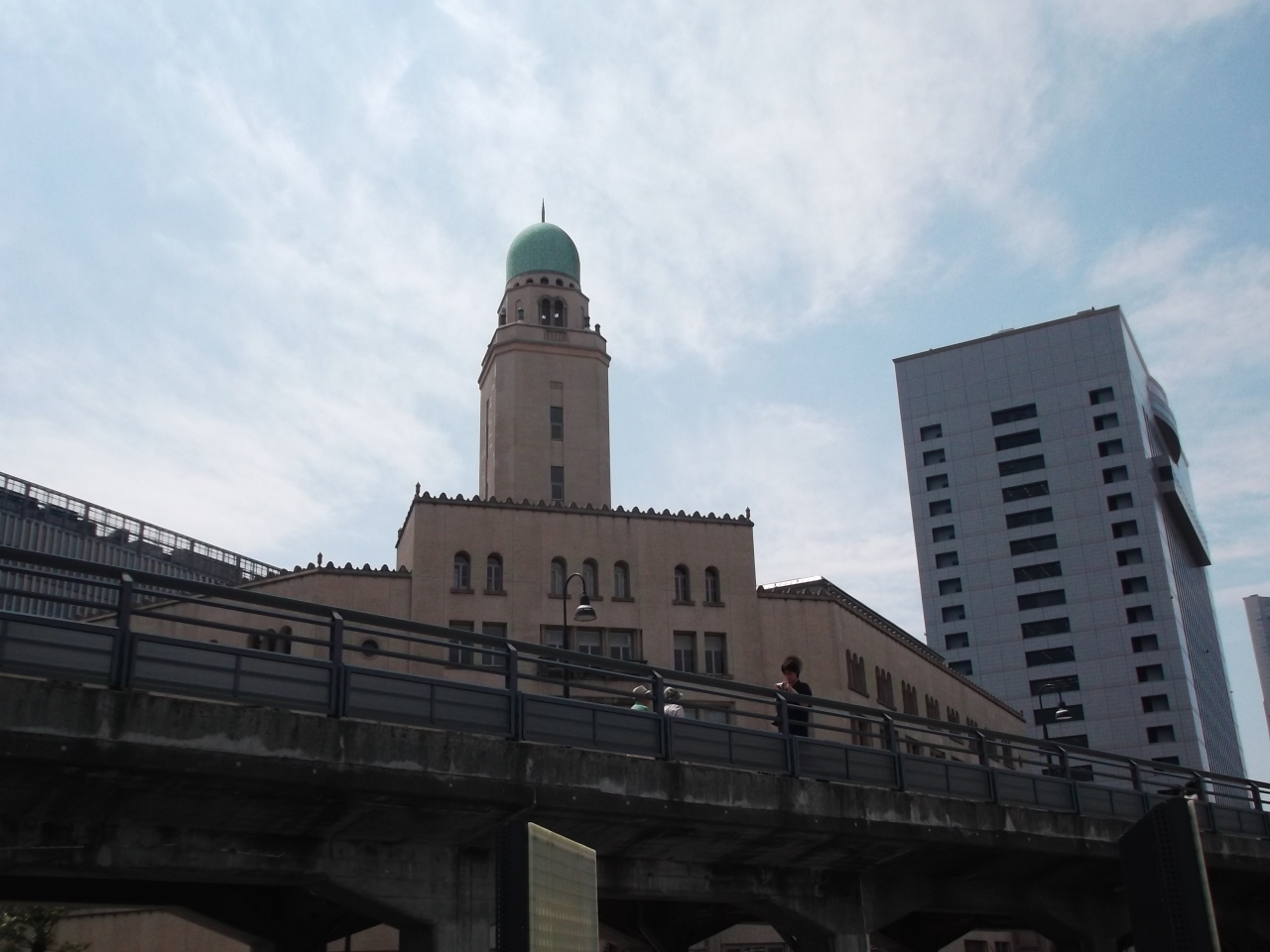 クイーンの塔の愛称で知られています。イスラム寺院のような、天辺が緑青色のドーム。遠くから見るととても印象的だ。キング(県庁)・ジャック(横浜市開講記念館)と合わせて横浜3塔、港ヨコハマのシンポルとのこと。
