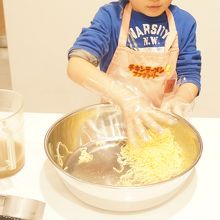 まずは13時からのチキンラーメン体験に。下の子がこの春に小学校に入ったので、やっと家族4人で参加することができました。子どもたちはこの時をとても楽しみにしていたので何日も前から興奮していました。いざ体験してみるととてもきれいな空間で親切なお姉さんが丁寧に教えてくれます。小麦粉をこねるところから製麺機を使って生地を一から作っていきます。かなり体力がいりますが下の子も無我夢中で体験していました。麺に伸ばして、切って、味つけして油で揚げて、と90分間があっという間に過ぎて、手作りのチキンラーメンが完成しました。