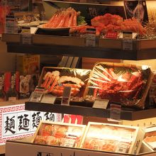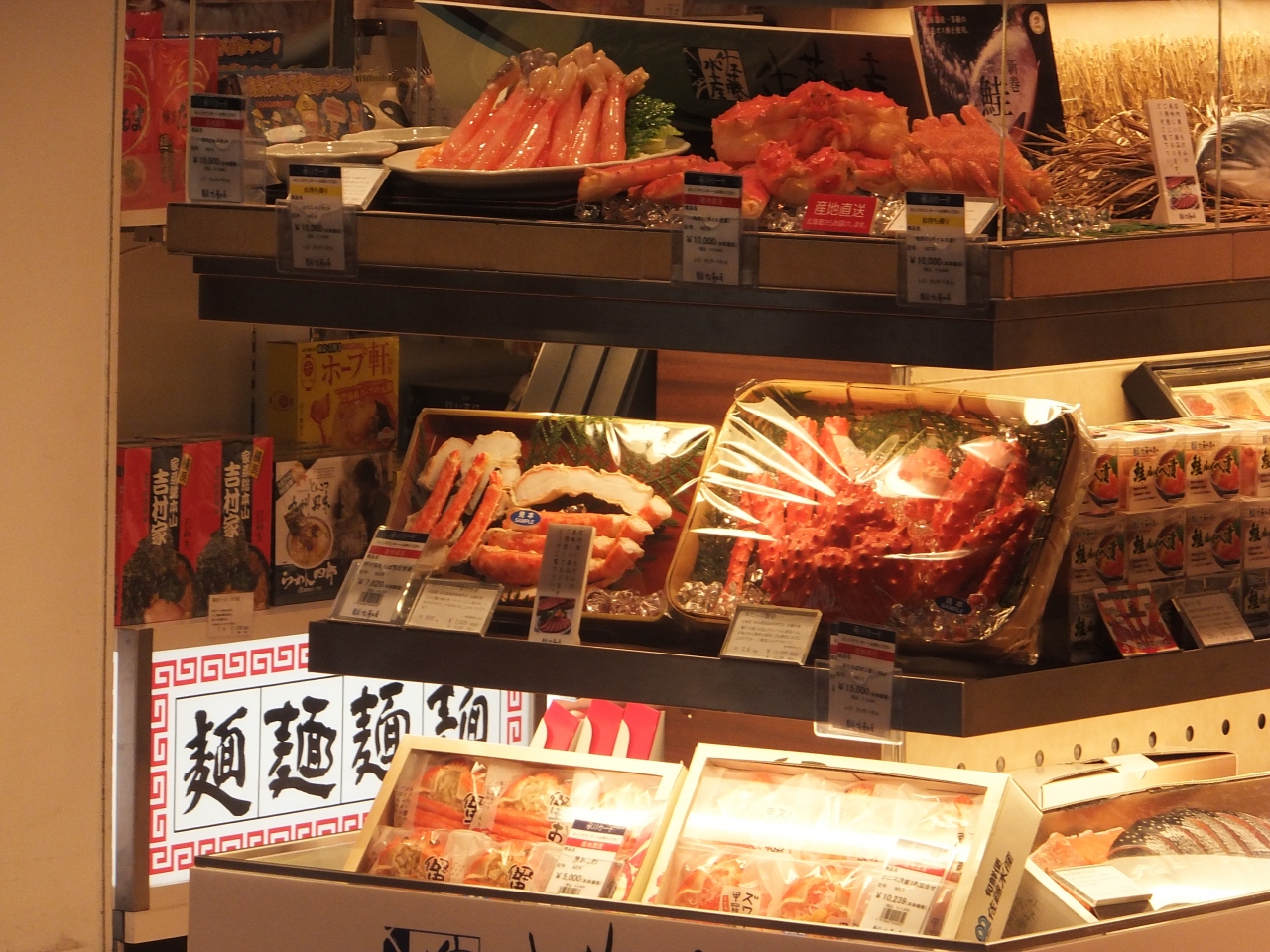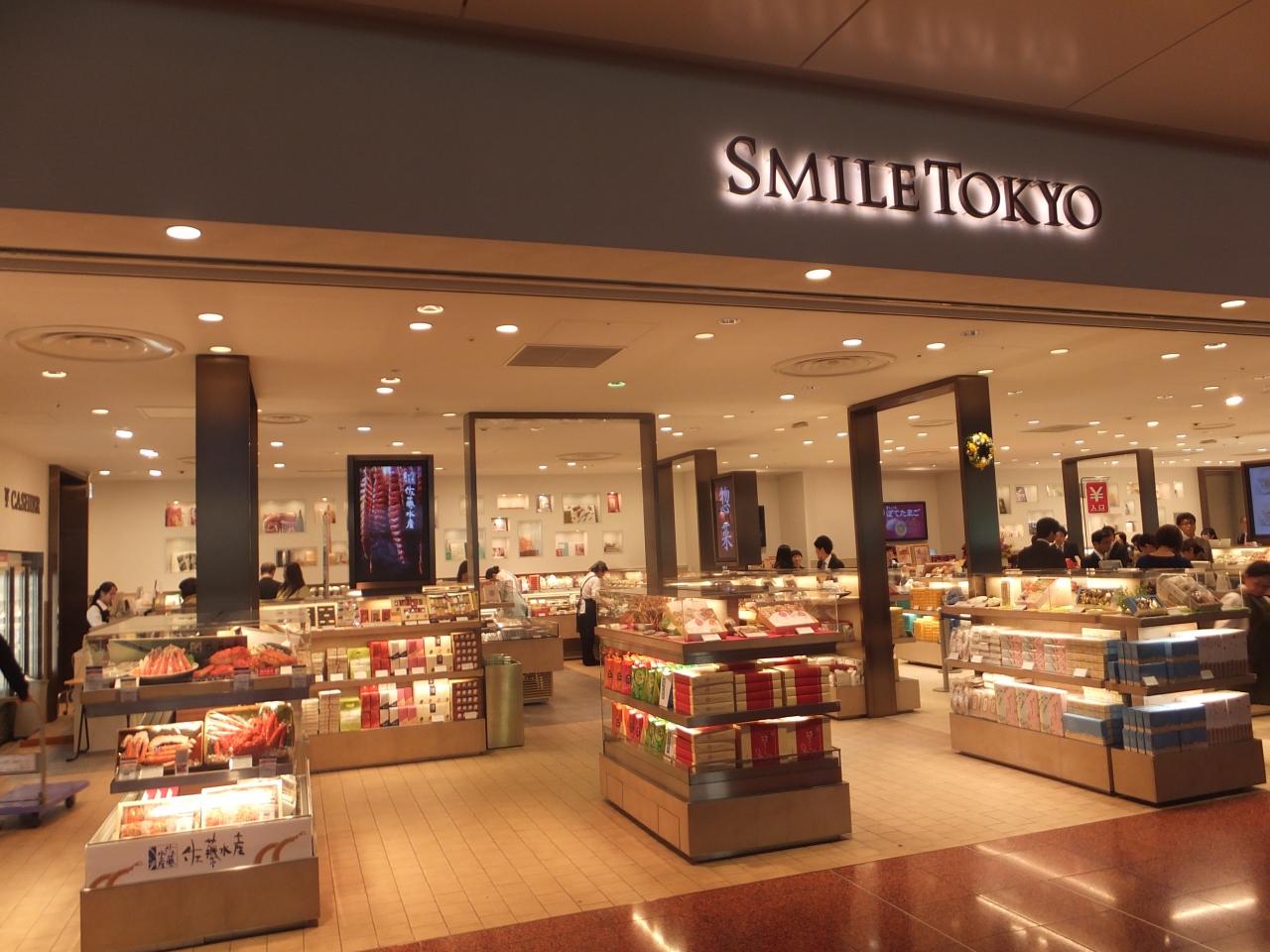 開放的な店構えです。向かって右側の売り場には、お菓子や東京スカイツリーのグッズなど東京のお土産がたくさん売られています。向かって左側には東京以外の土地のお土産もいろいろと売られています。カニも売られていてびっくりです。場所柄、飛行機の出発までの買い物には便利です。