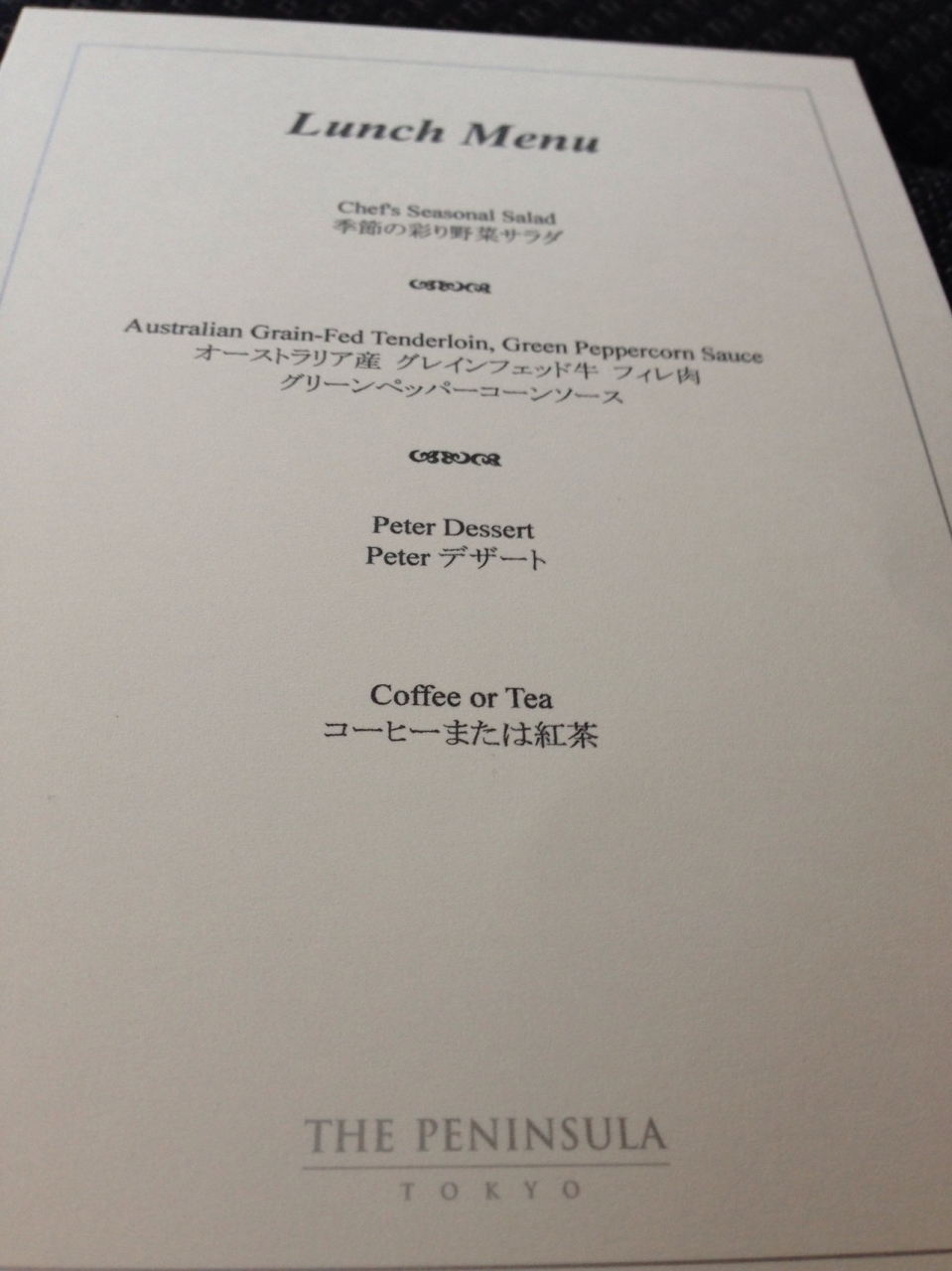ペニンシュラホテル東京の24階にあるPeterでランチを取りました。