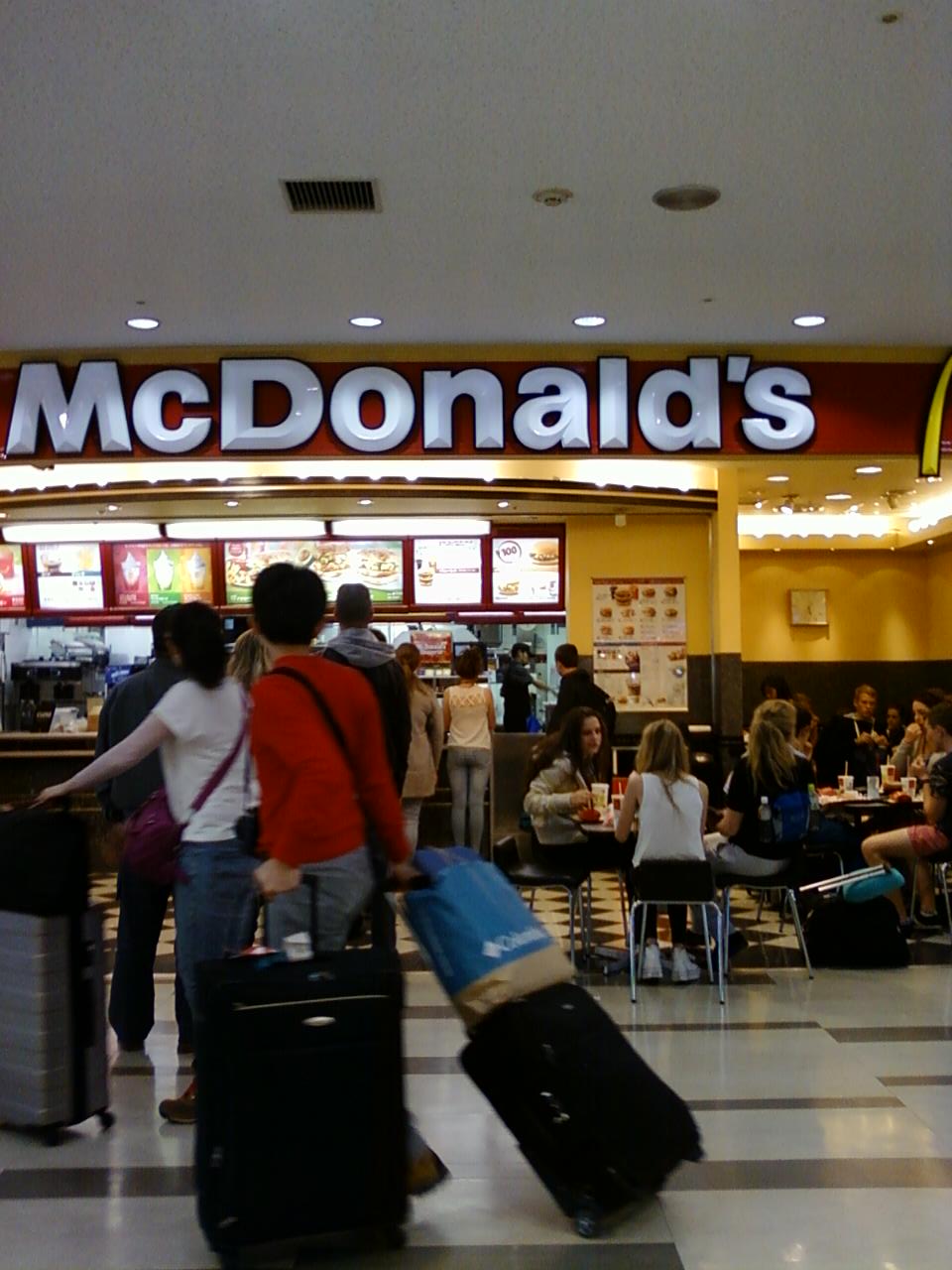 ここのマクドナルドは、成田国際空港弟2ターミナルの四階、レストランフロアにあります。このフロアにはいくつかのレストランが入っているのですが、ここのお店が一番開放的、入りやすいかと思います。ドアもなくオープンなので、実際はあまり落ち着きませんが、外国のお客さんには安心感があるでしょうね。いつ行っても特に欧米系のお客さんが多いお店です。