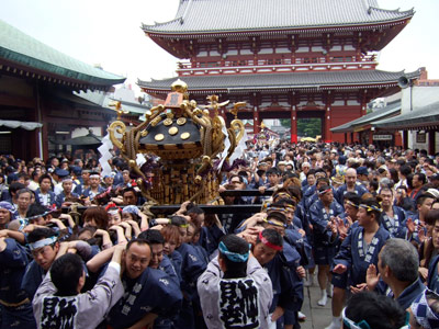 普段は浅草寺の本堂脇に遠慮がちに建っている浅草神社の例大祭。