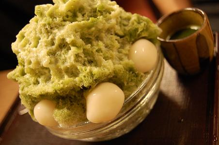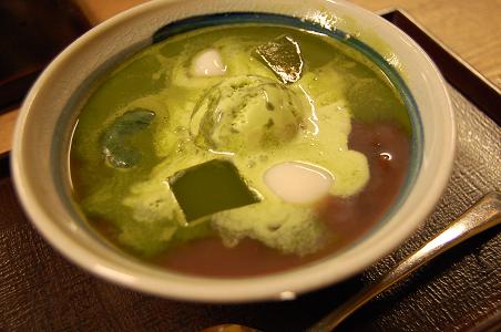 白玉、よもぎの団子、抹茶ゼリー、抹茶アイスが入ってます。