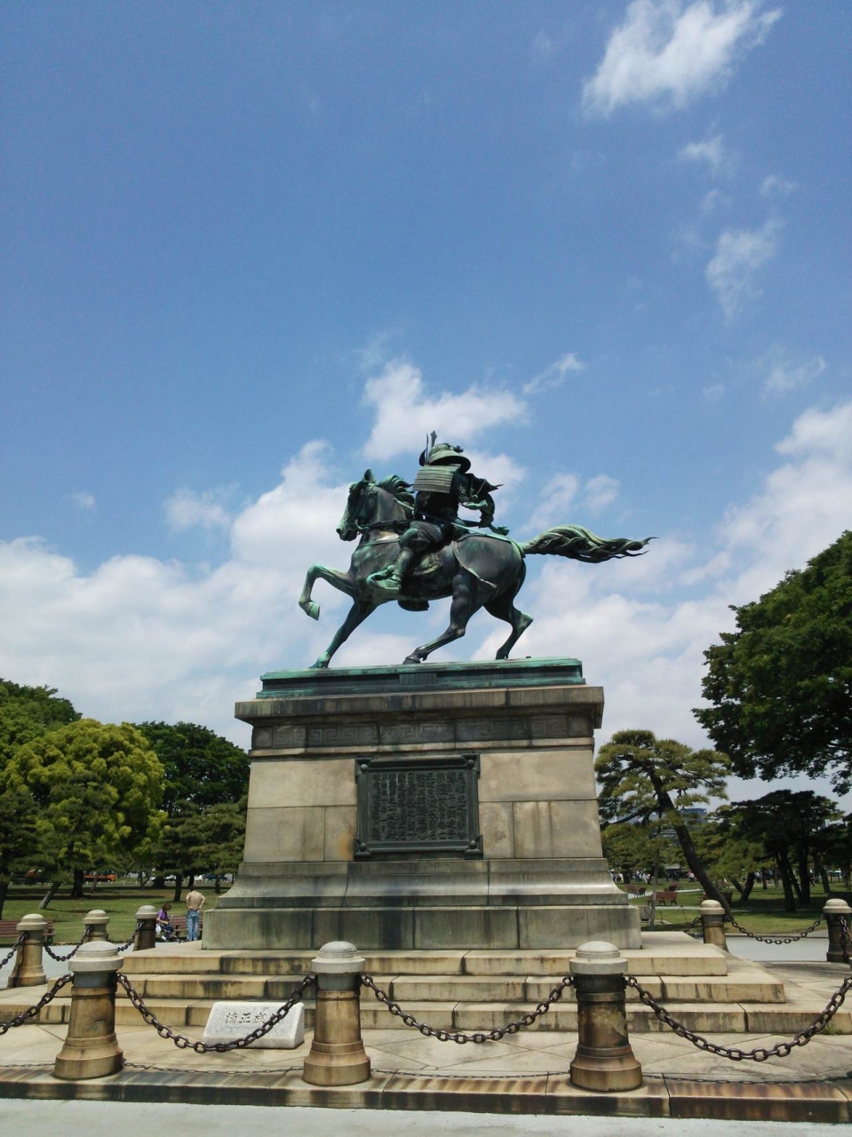 皇居外苑の観光バス駐車場のそばに建っている楠正成の銅像です。