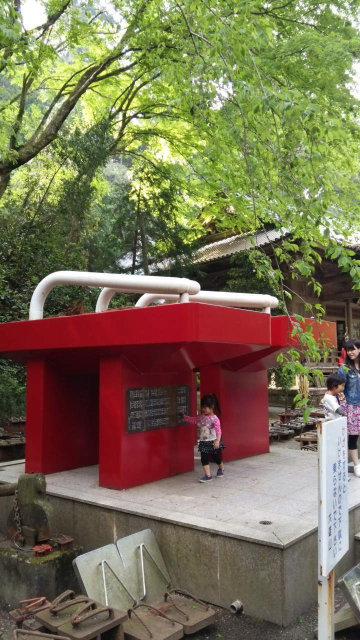 - 敷地は非常に広くて、お寺の中には滝や日本一大きな下駄などがあります
