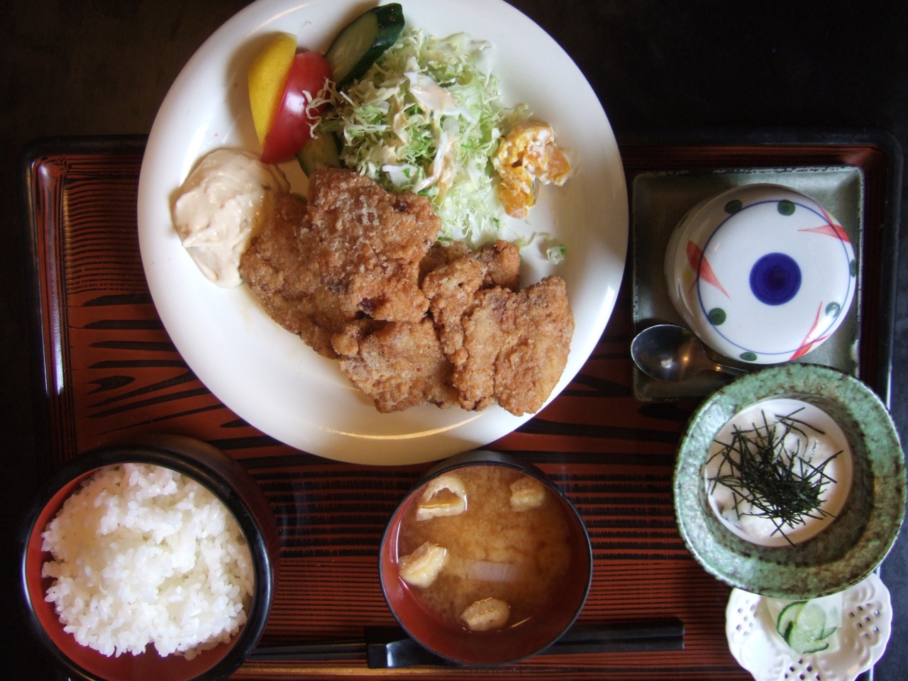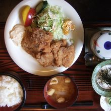 日替わりランチは690円とお得で、この日は豚バラの竜田揚げでした。